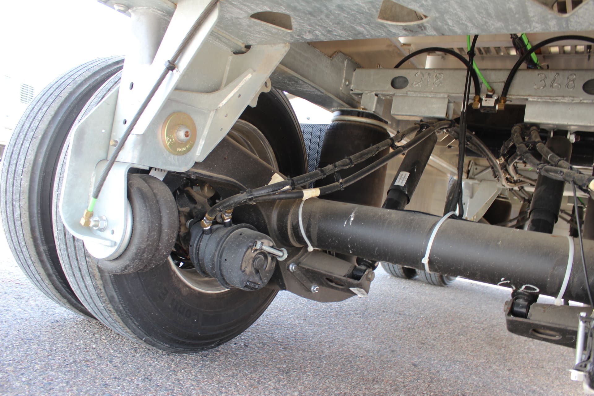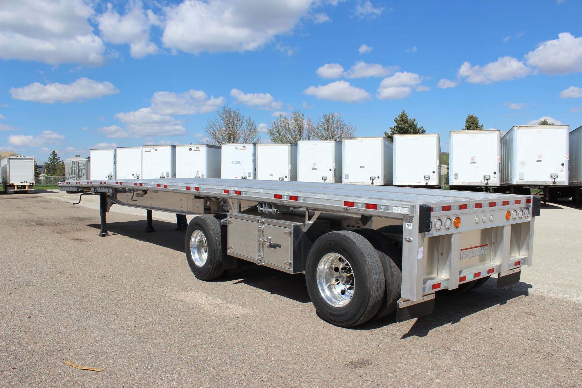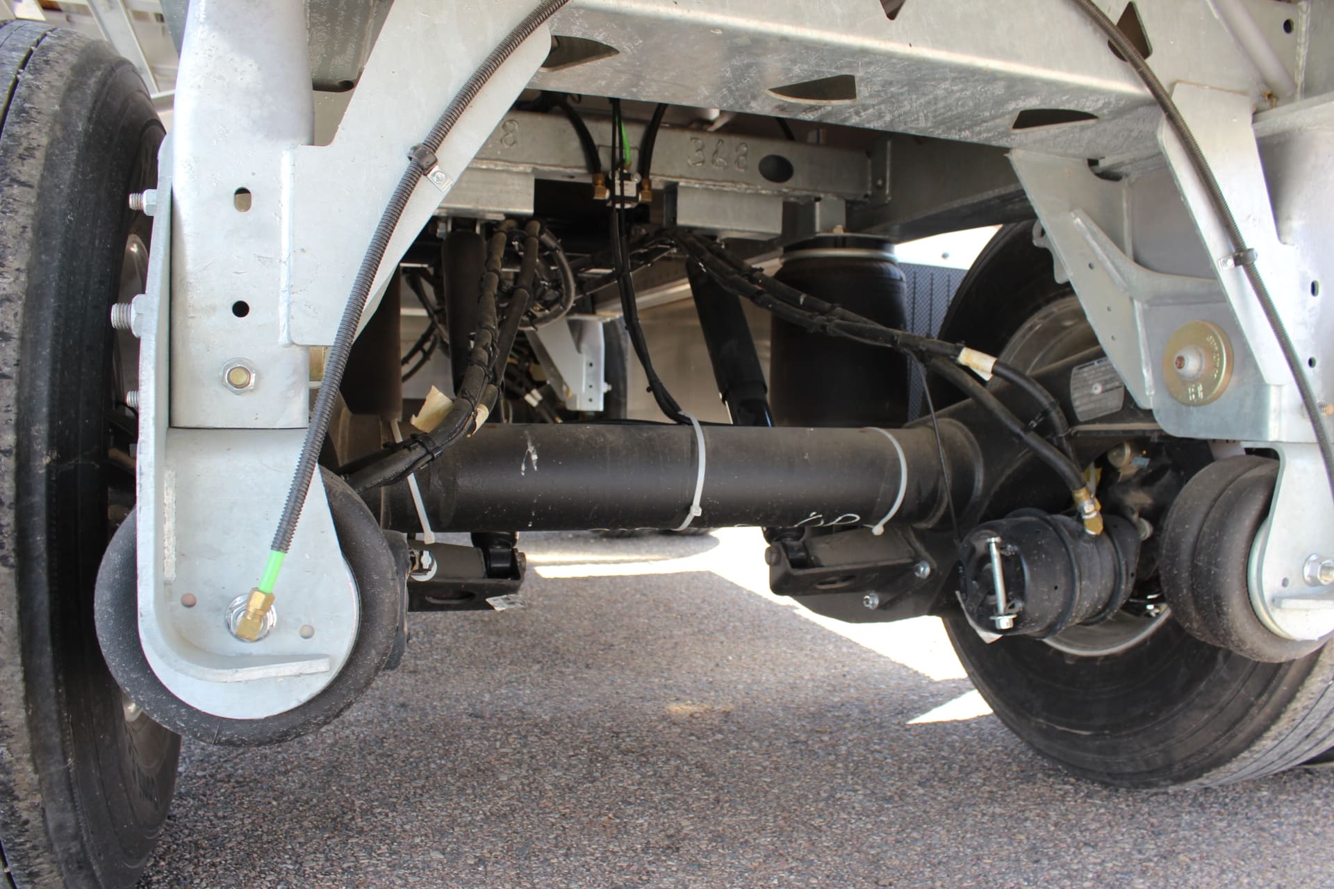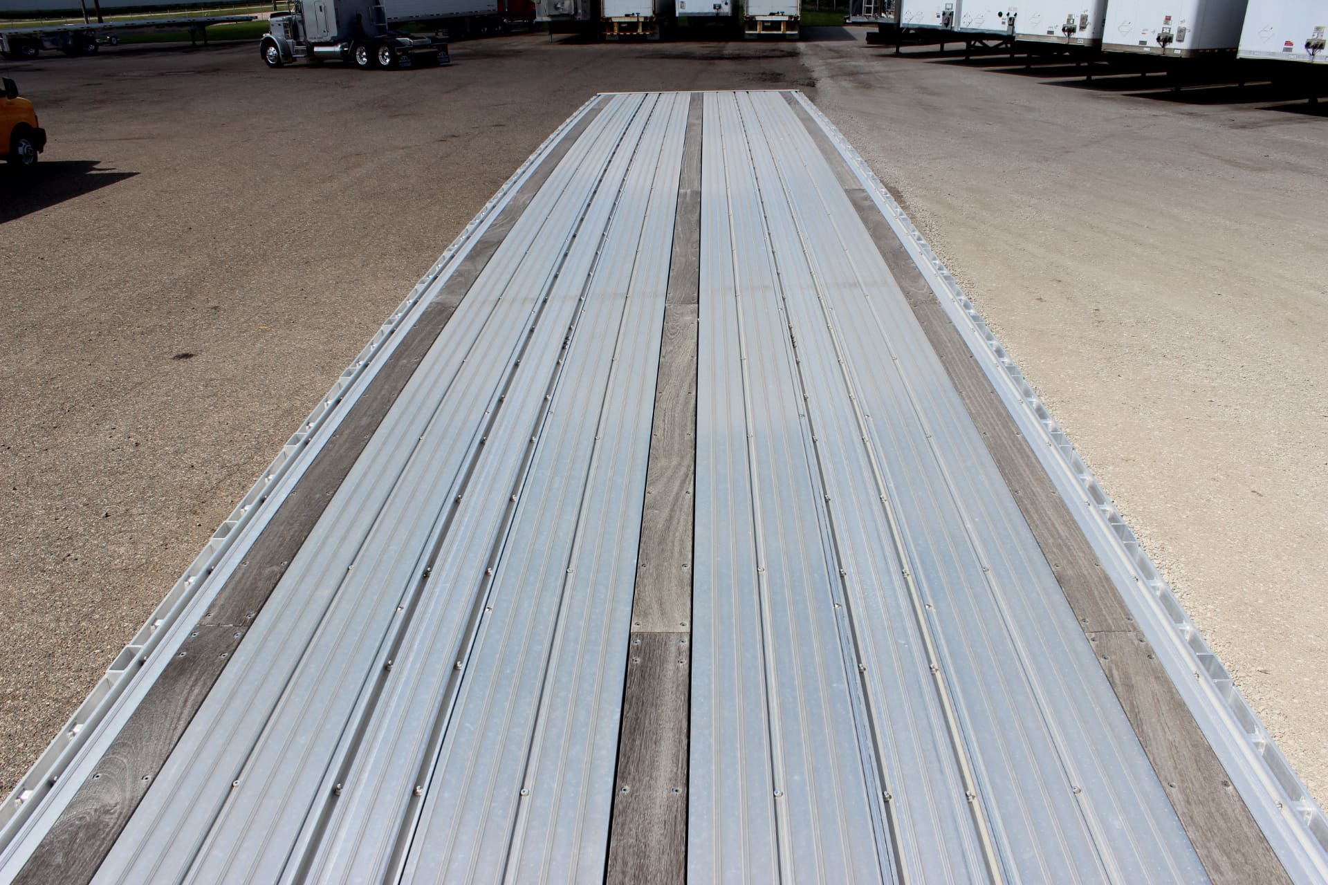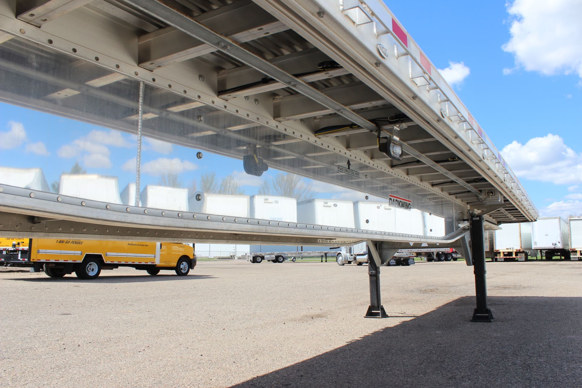48’x102″ Aluminum flatbed, apitong floor, nail strips, sliding winch track with winches, 16″ crossmembers, coil package, 2 aluminum toolboxes, air ride suspension, spread axle with lifting front axle, disc brakes, tire inflation system, 11R22.5 aluminum disc wheels.