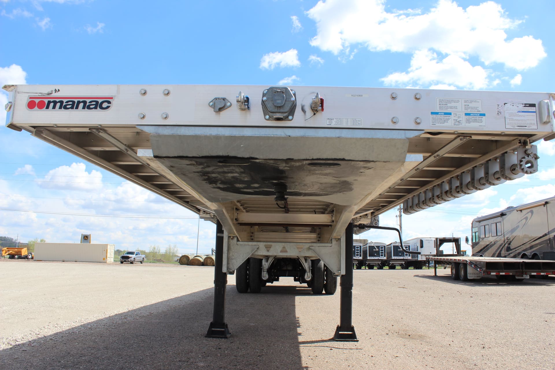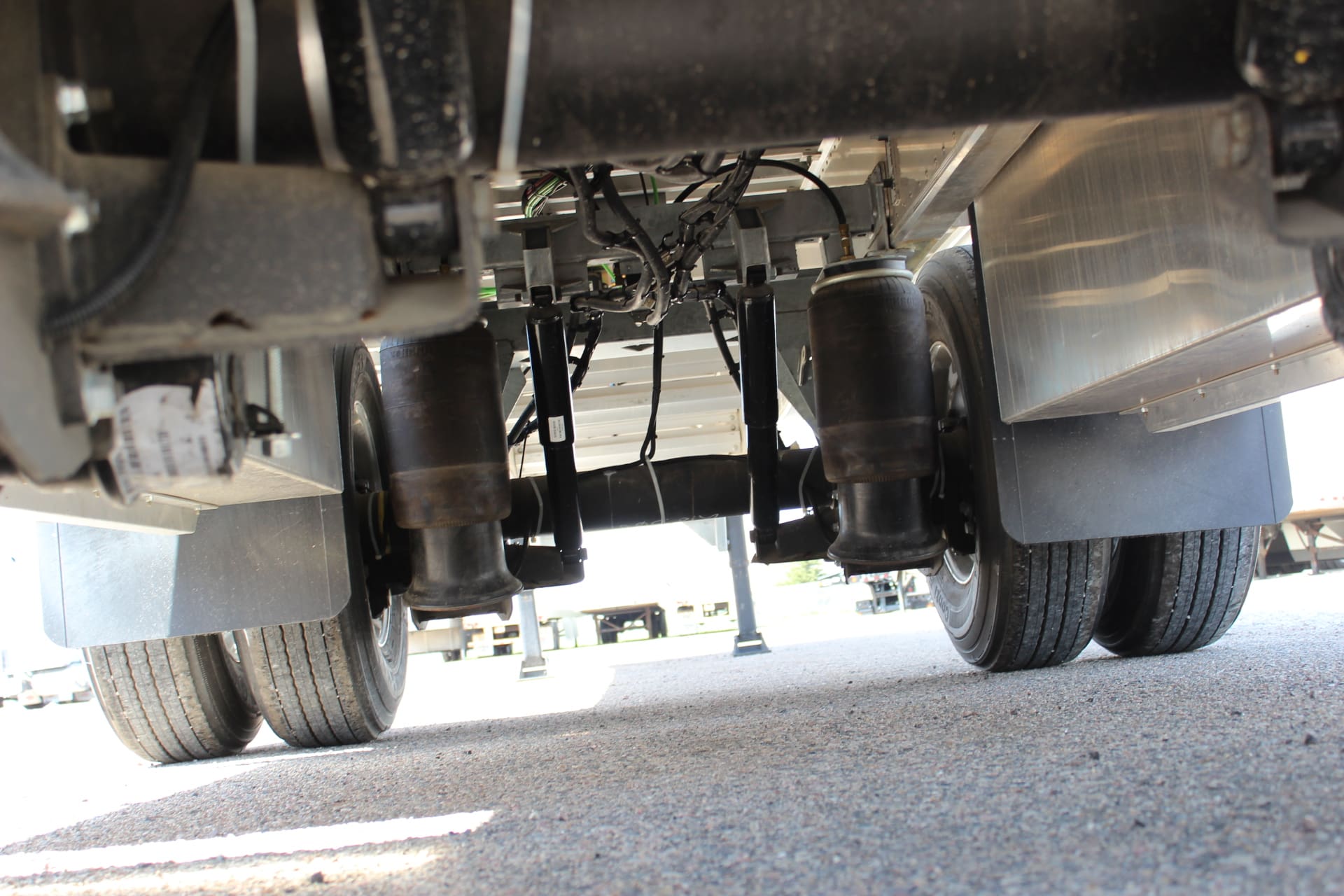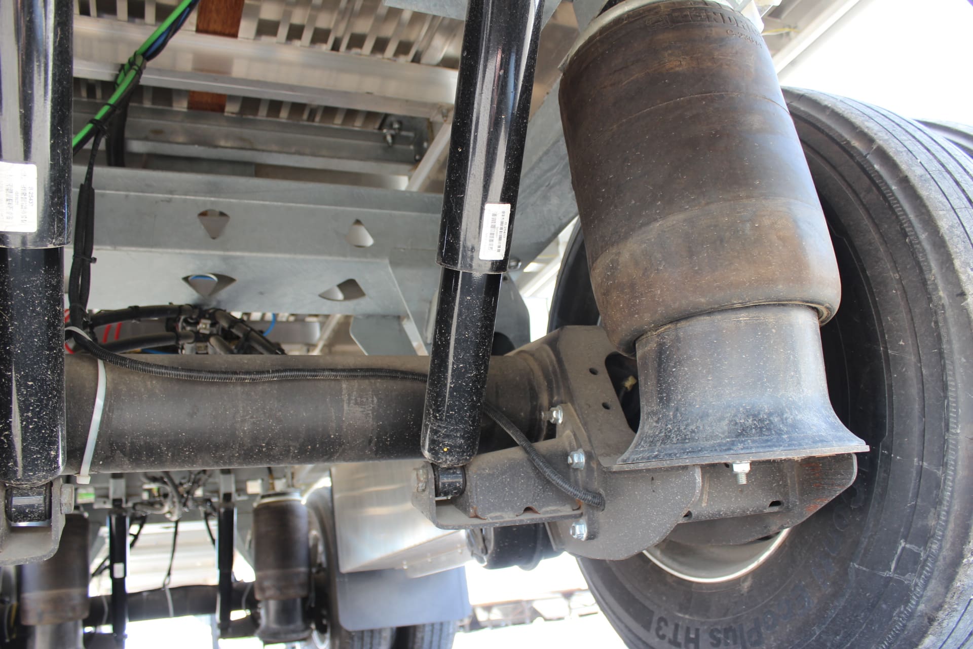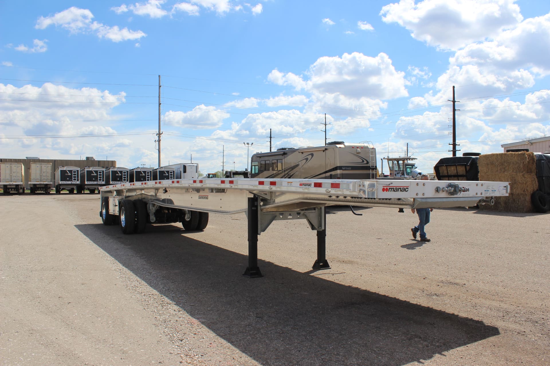 48’x102″ Aluminum flatbed, apitong floor, nail strips, sliding winch track with winches, 16″ crossmembers, coil package, 2 aluminum toolboxes, air ride suspension, spread axle with lifting front axle, disc brakes, tire inflation system, 11R22.5 aluminum disc wheels.