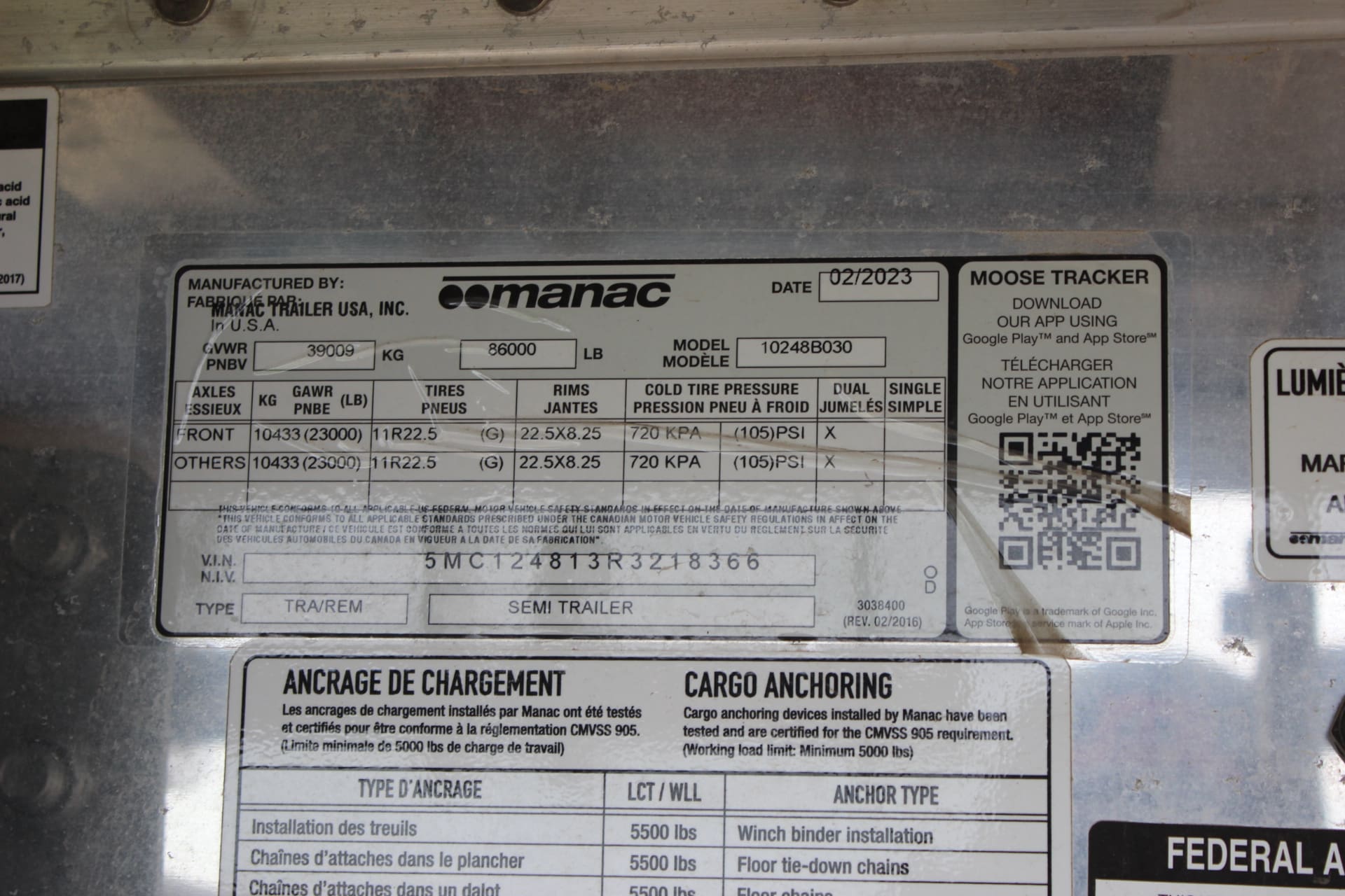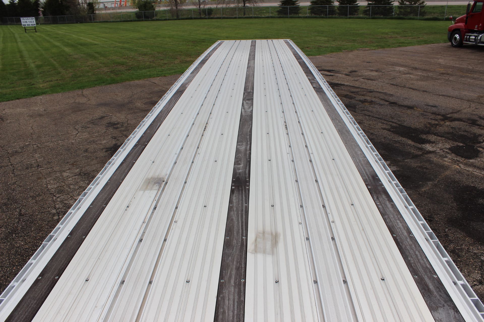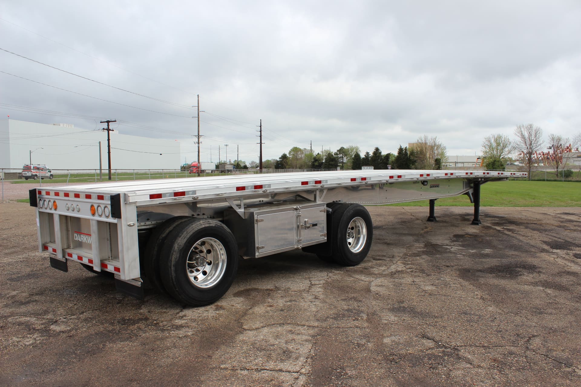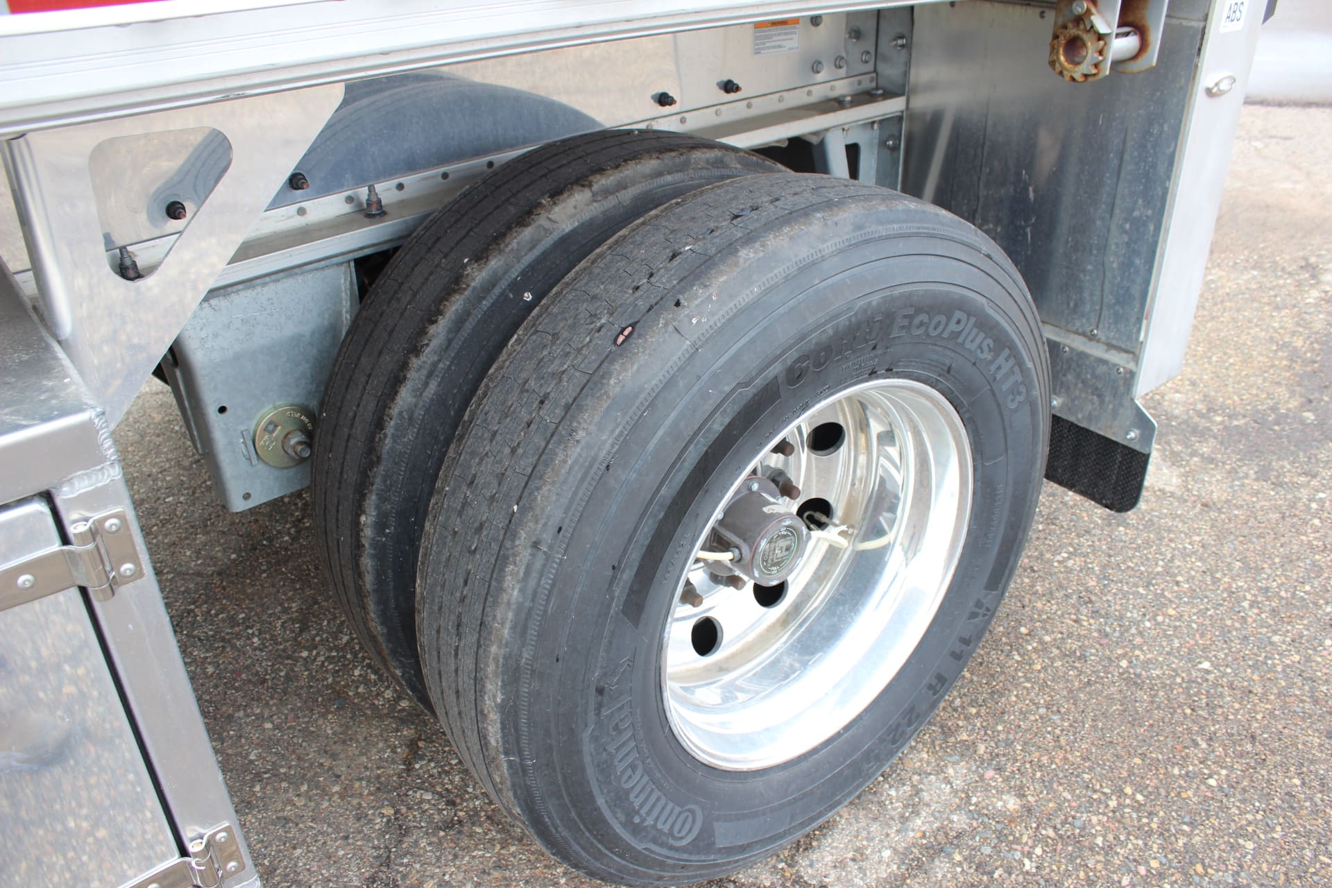48’x102″ Aluminum flatbed, apitong floor, nail strips, sliding winch track with winches, 16″ crossmembers, coil package, 2 aluminum toolboxes, air ride suspension, spread axle with lifting front axle, disc brakes, tire inflation system, 11R22.5 aluminum disc wheels.